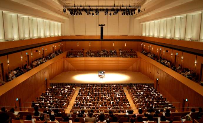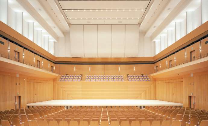 本格的なクラシックコンサートを主目的に設計された大ホール。オーケストラ演奏会はもとより、室内楽、リサイタル、合唱など、幅広い分野に適応。オープン以来、抜群の音響性能を誇る国内有数の本格的ホールとして信頼を得ています。*地上2階、3階