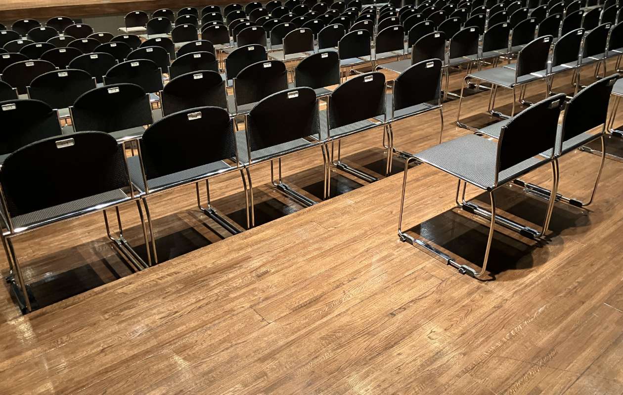 ③撤去した椅子は、ステージ裏通路等に仮置きしていただきます。(導線にご注意ください)